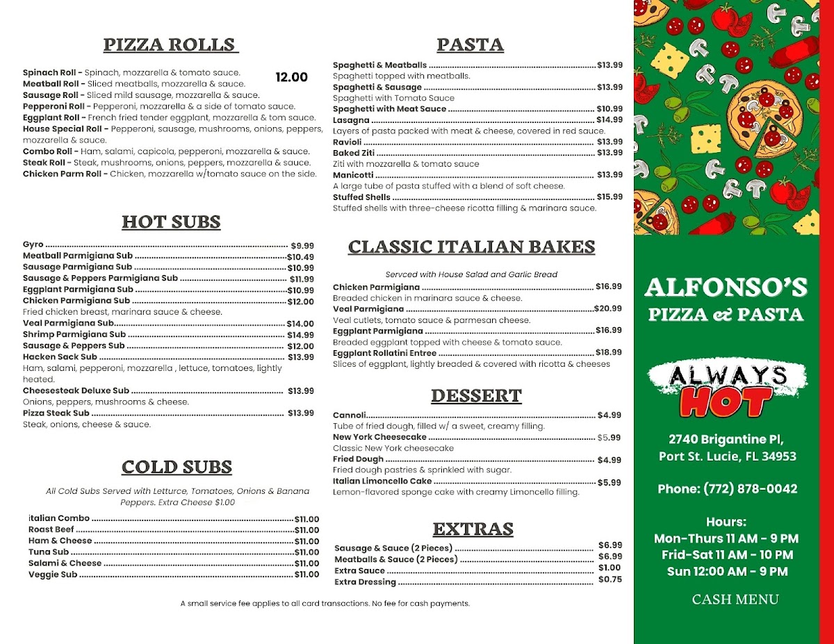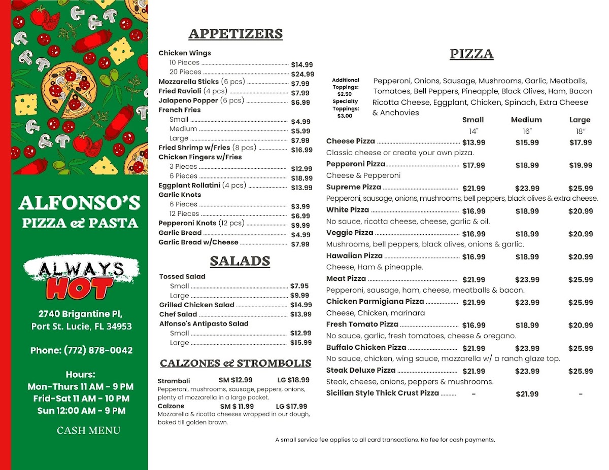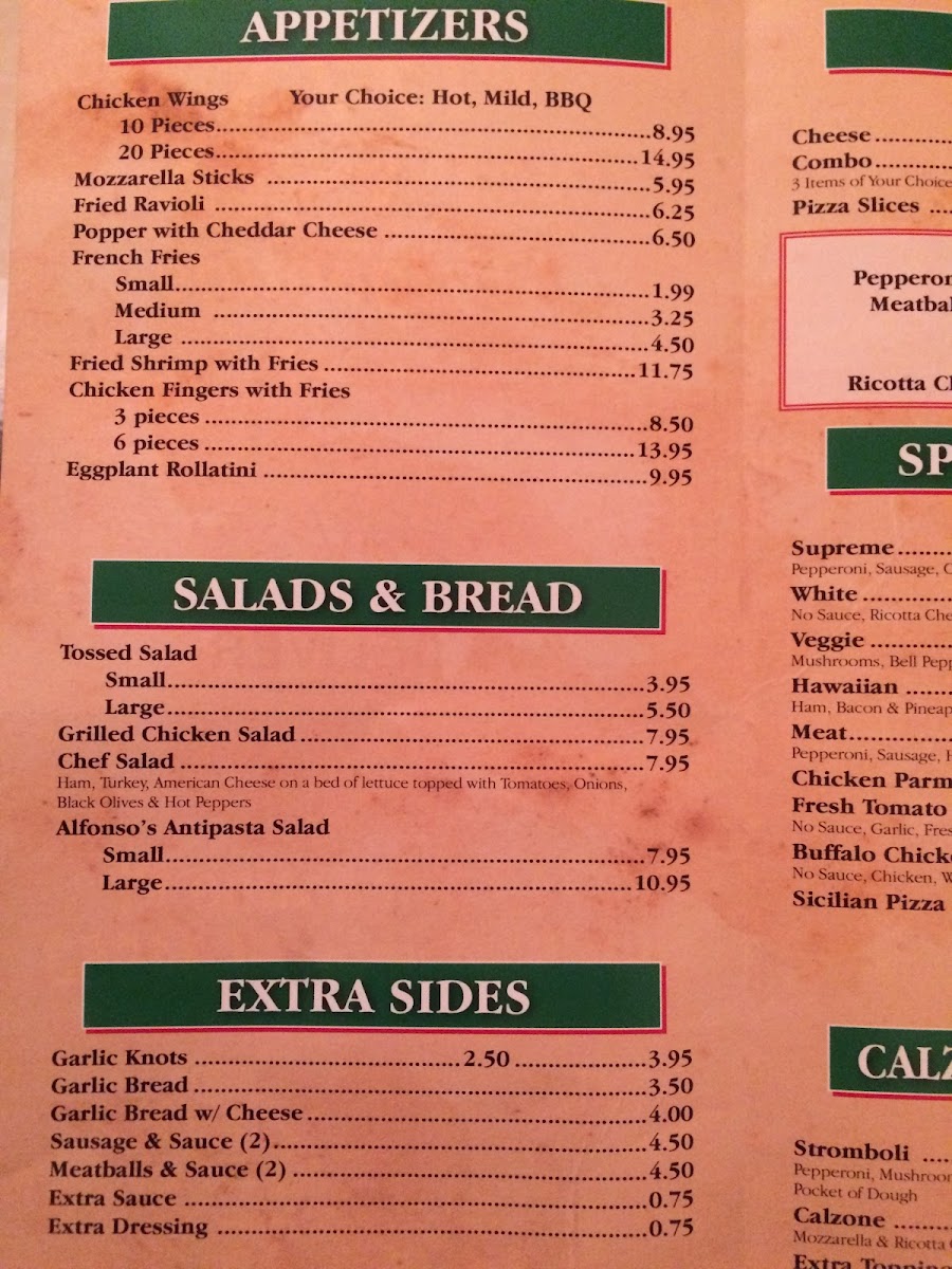 Alfonso's Pizza & Pasta Menu (2025 Update)